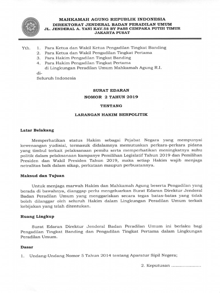 0 Response to "Surat Edaran Mahkamah Agung Nomor 2 Tahun 2014"