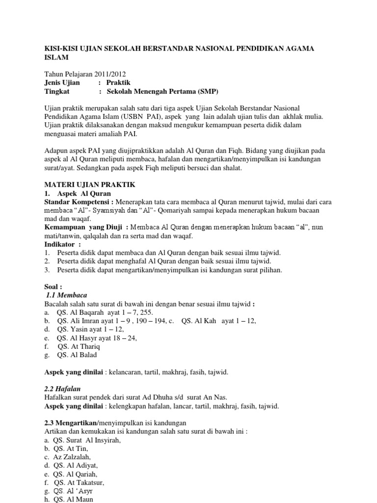 Kisi Kisi Ujian Tulis Dan Praktek Smp Dan Smk Sma