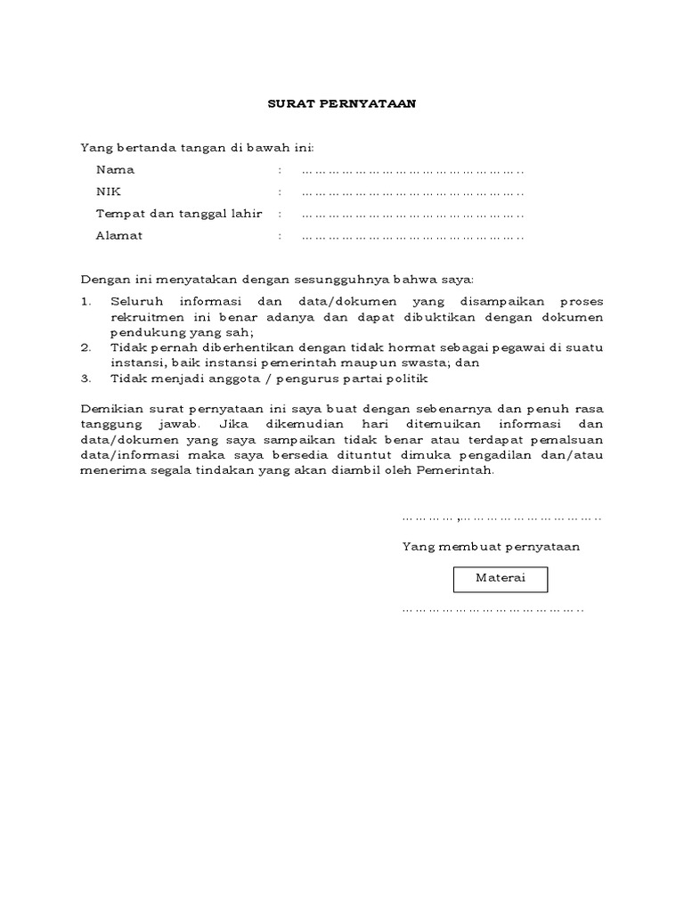 9 Contoh Surat Pernyataan Diri Kesanggupan Perjanjian Dan Lainnya