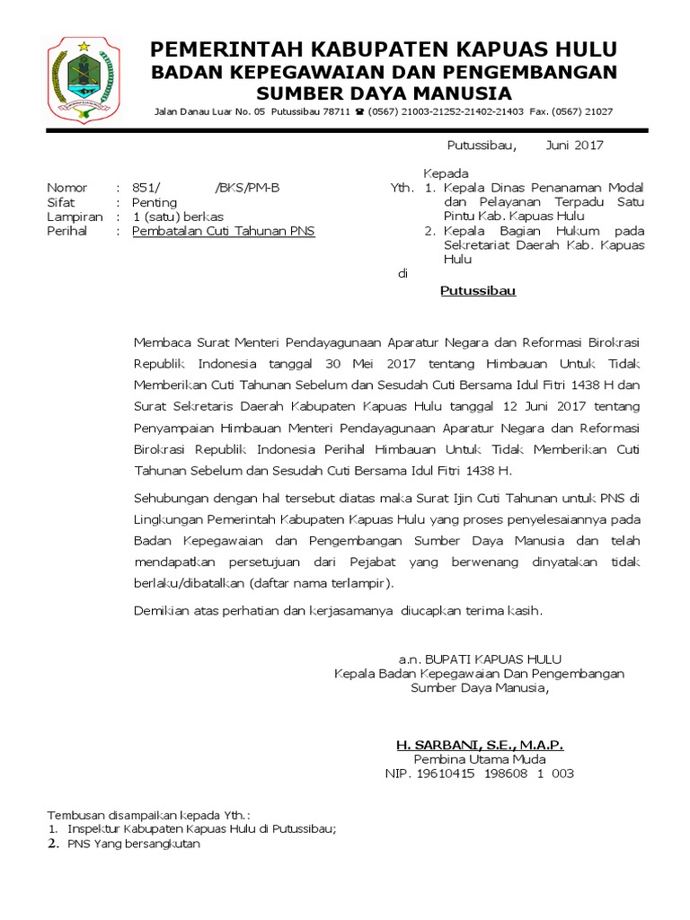 Berikut data lengkap tentang Contoh Surat Cuti Tahunan Pns 2017.