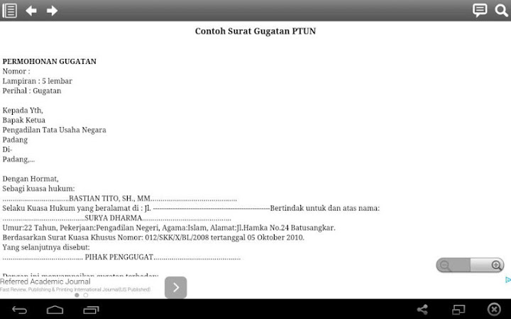 Contoh Gugatan Pada Peradilan Tata Usaha Negara