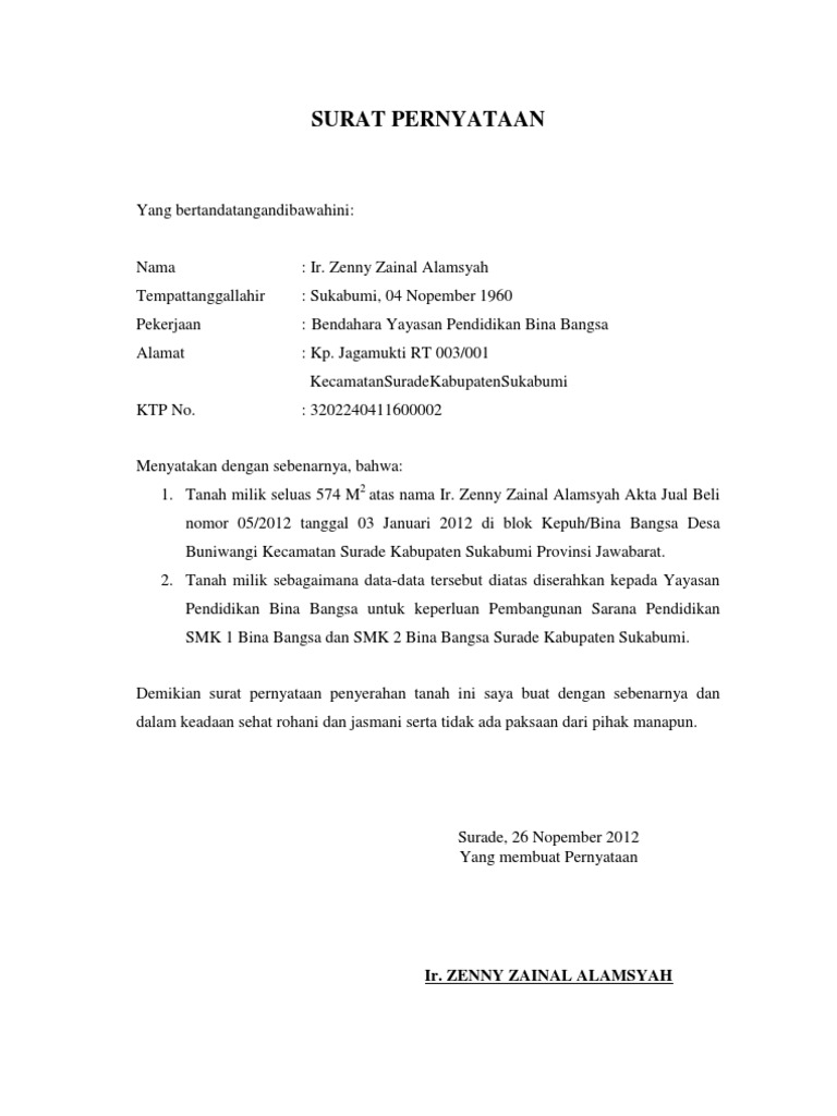 Contoh Surat Pernyataan Hibah Tanah Backup Gambar