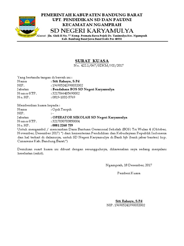 Contoh Surat Kuasa Kepala Sekolah Untuk Pencairan Atau Pengambilan