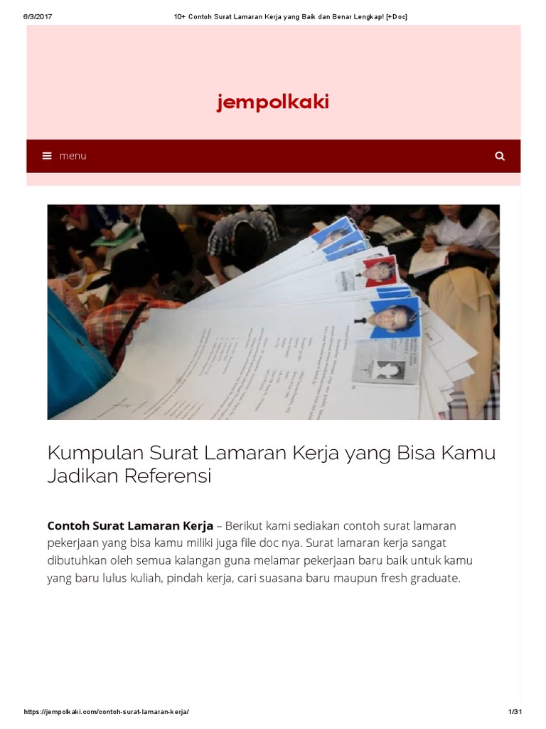 17 Contoh Surat Lamaran Kerja Terbaru Yang Baik Dan Benar Doc