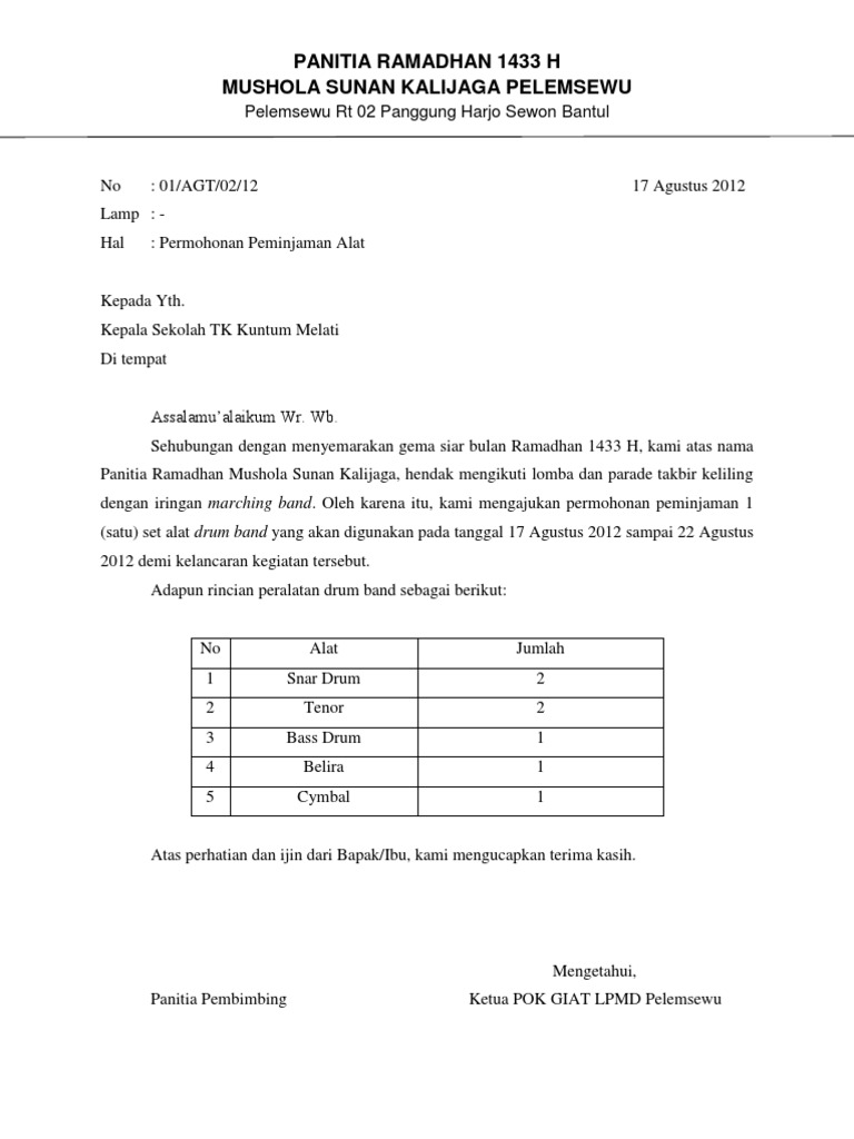 Koleksi admin mengenai Contoh Surat Peminjaman Barang Di Sekolah Doc.