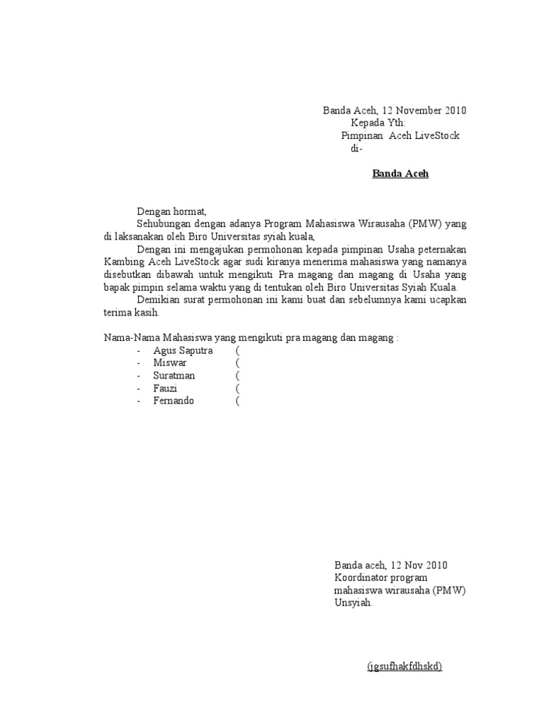 Bentuk Contoh Surat Permohonan Magang Kerja Yang Baik Dan Benar