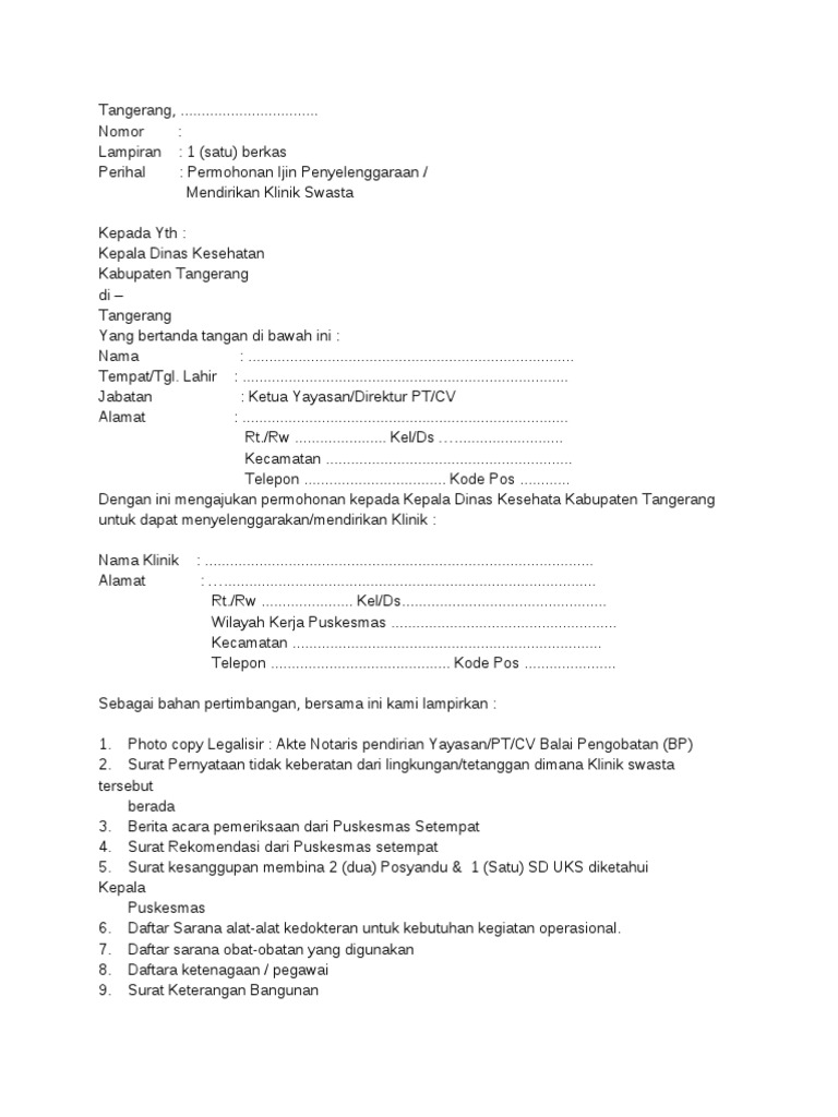 Admin mengumpulkan informasi Contoh Surat Permohonan Izin Mendirikan Klinik.