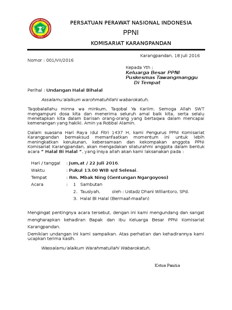 Contoh Surat Undangan Resmi Acara Halal Bihalal Suratmenyuratnet