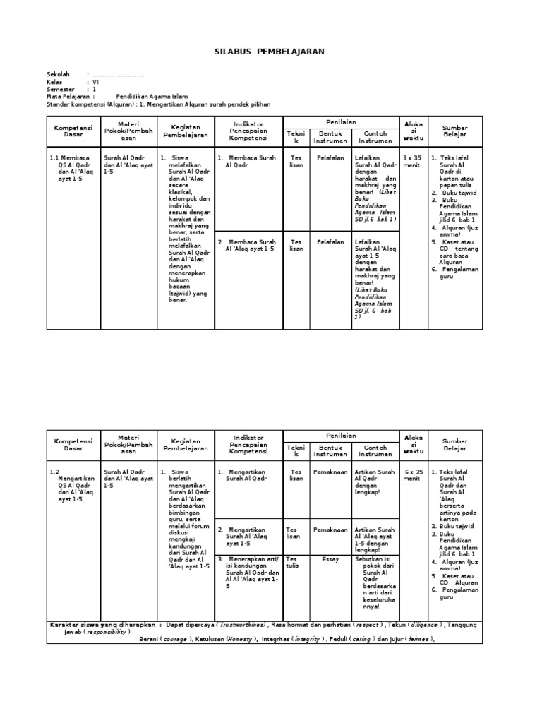 Rpp Mengartikan Qs Al Qadr Dan Al Alaq Ayat 1 5