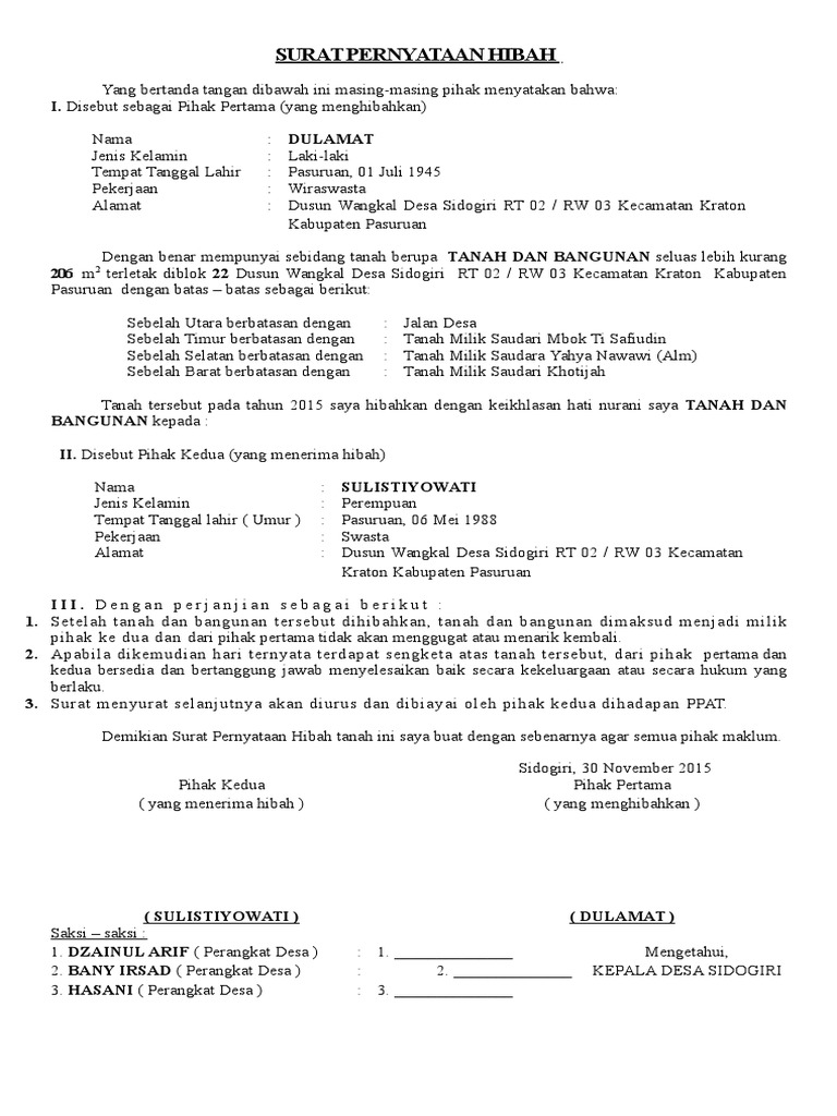 Contoh Surat Hibah Tanah Doc Suratmenyuratnet