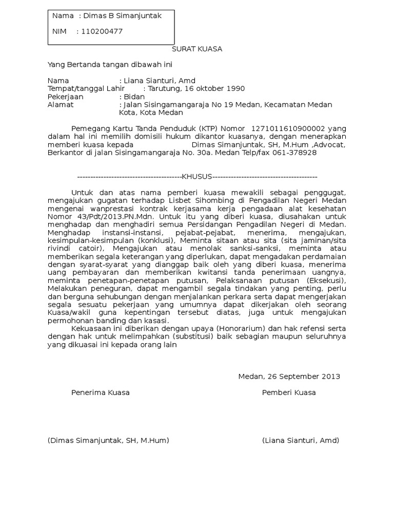 Doc Contoh Surat Kuasa Penggugat Gee Dion Academiaedu