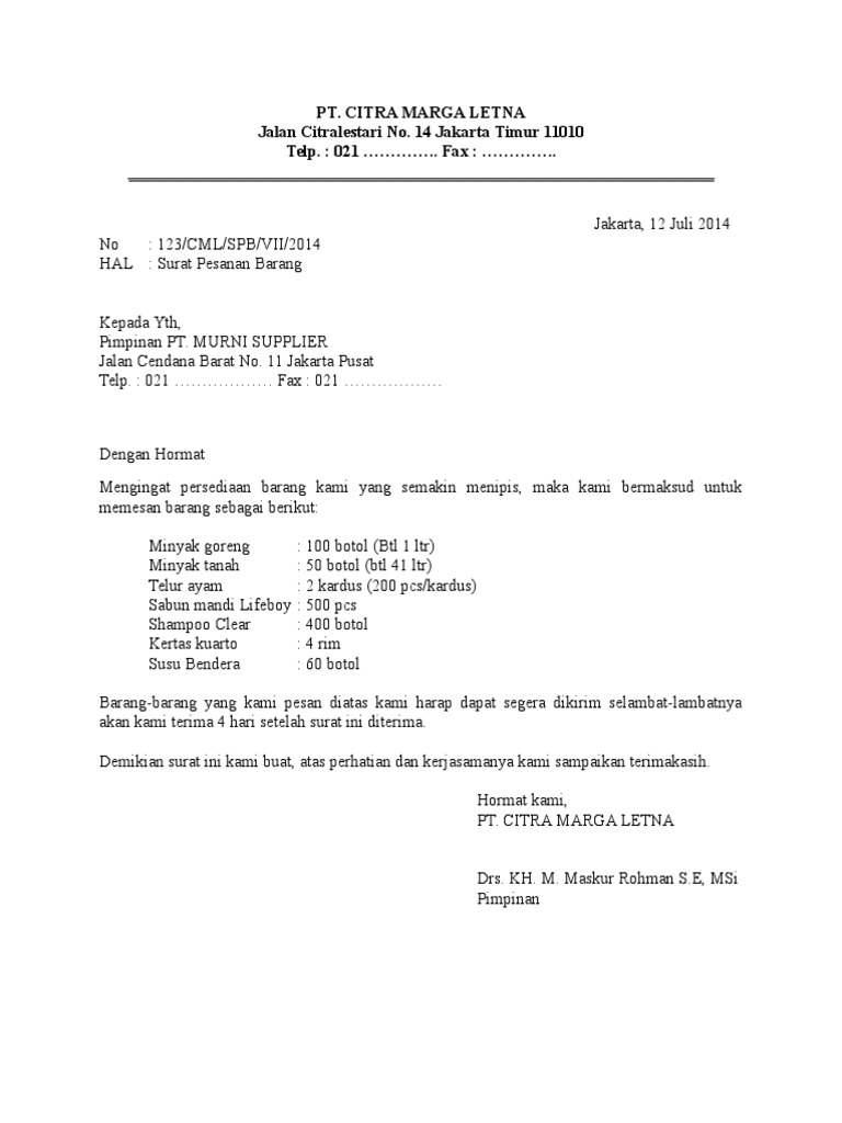 Contoh Surat Pesanan Barang Yang Benar Badrul Mozila