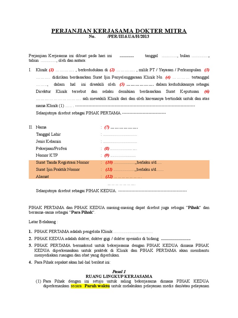 Data-data mengenai Contoh Surat Perjanjian Kerjasama Dokter Dengan Rumah Sakit.