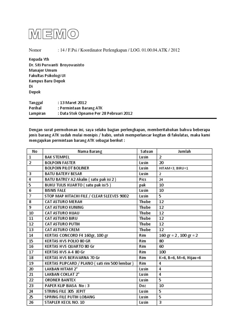 Contoh Surat Permintaan Barang Inventaris Kantor Suratmenyuratnet