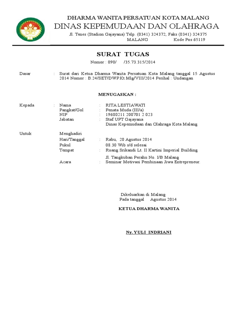 Jika ada sedang mencari Contoh Surat Undangan Dharma Wanita Persatuan.