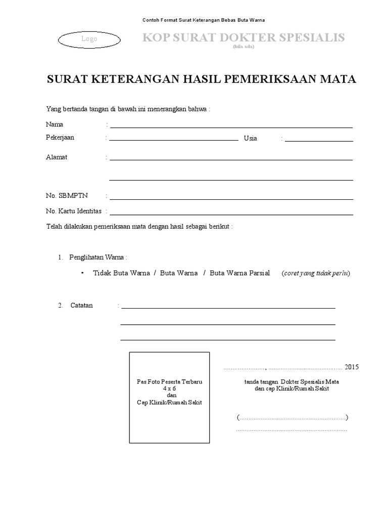 Sekian yang admin bisa bantu mengenai surat keterangan tidak buta warna dari dokter. Terima kasih telah berkunjung ke blog Kumpulan Surat Penting 2018.