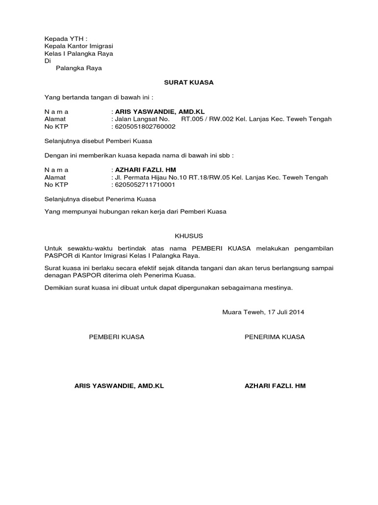 Contoh Surat Kuasa Pengambilan Paspor Portal Uang
