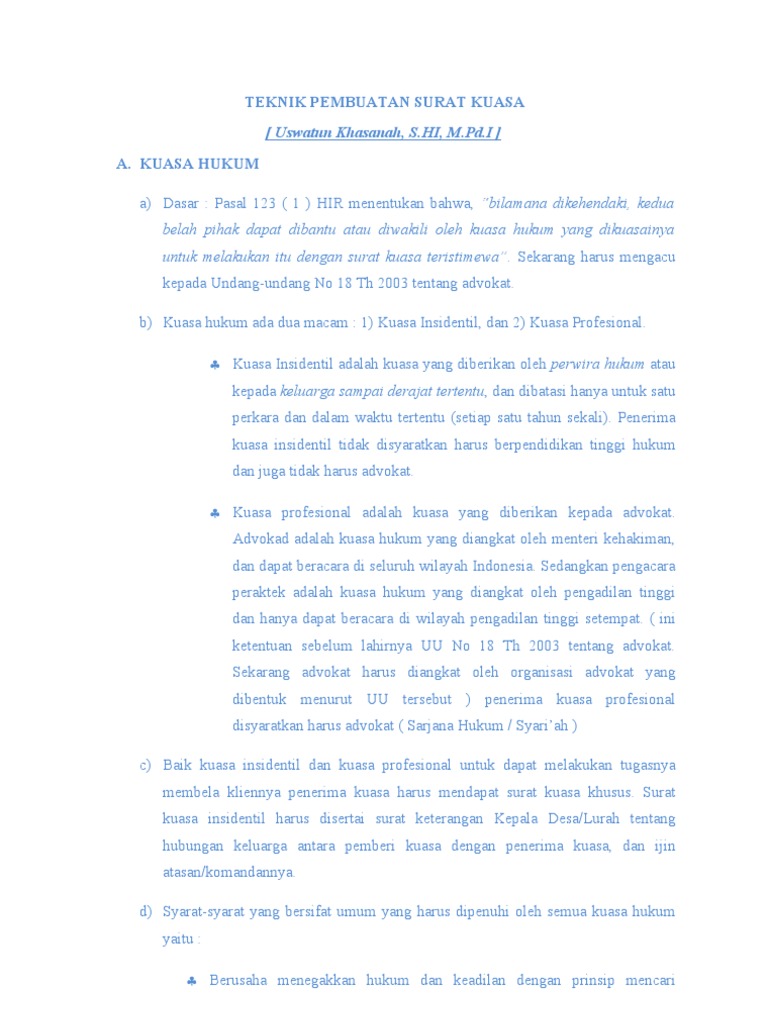 Teknik Pembuatan Surat Kuasa