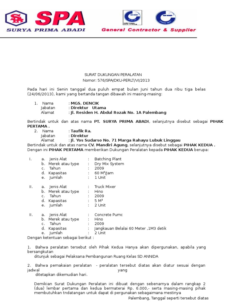 Berikut data lengkap tentang Contoh Surat Dukungan Perusahaan Untuk Tender.