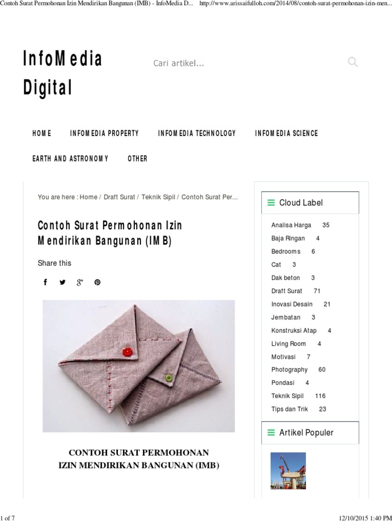 Contoh Surat Permohonan Izin Mendirikan Bangunan Imb Infomedia
