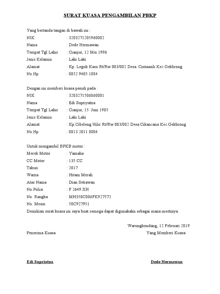 Contoh Surat Kuasa Filetype Doc Detil Gambar Online
