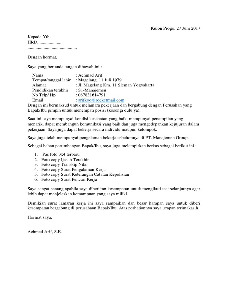 17 Contoh Surat Lamaran Kerja Terbaru Yang Baik Dan Benar Doc