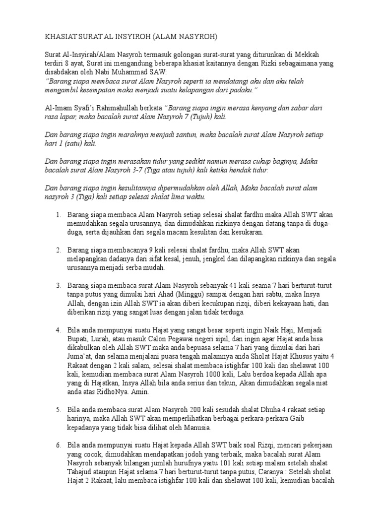 Itulah khasiat surat al insyirah untuk jodoh yang dapat admin kumpulkan. Admin blog Kumpulan Surat Penting juga mengumpulkan gambar-gambar lainnya terkait khasiat surat al insyirah untuk jodoh dibawah ini.