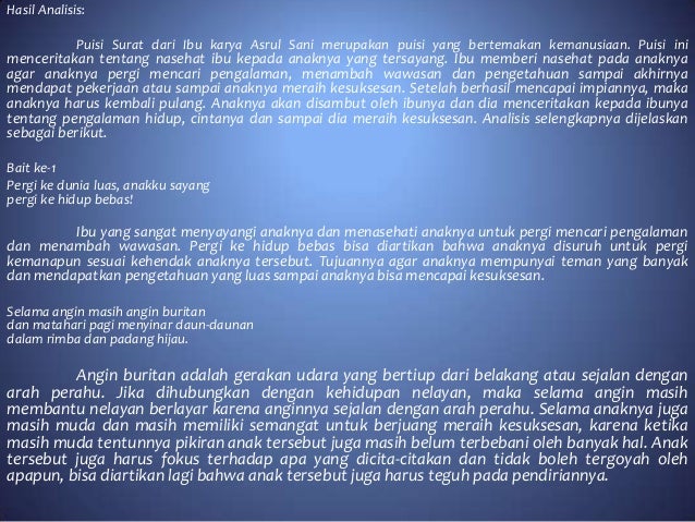 Fitri Puisi Surat Dari Ibu Karya Asrul Sani Sanggargeniuscom