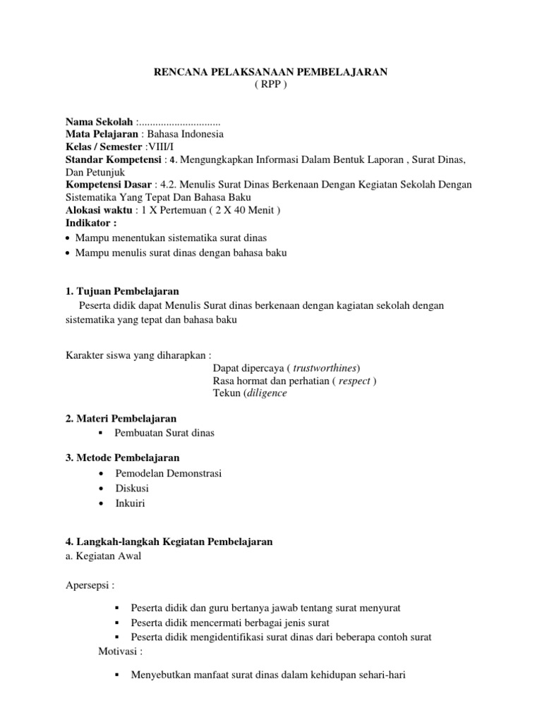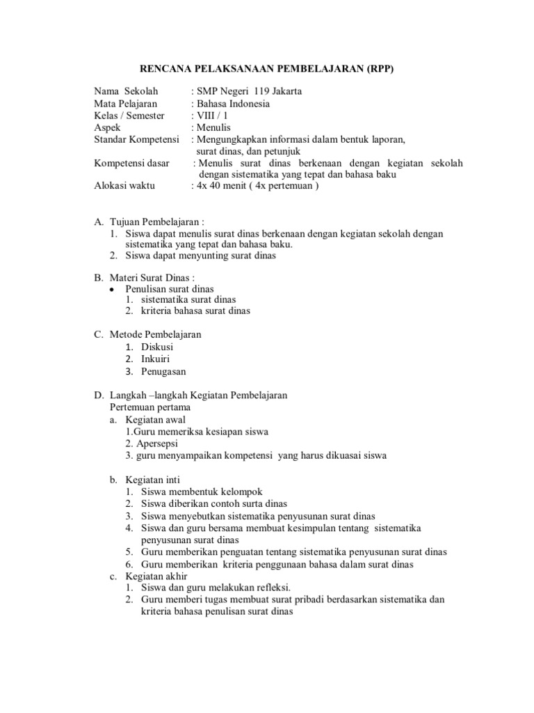 Rencana Pelaksanaan Pembelajaran Surat Dinas