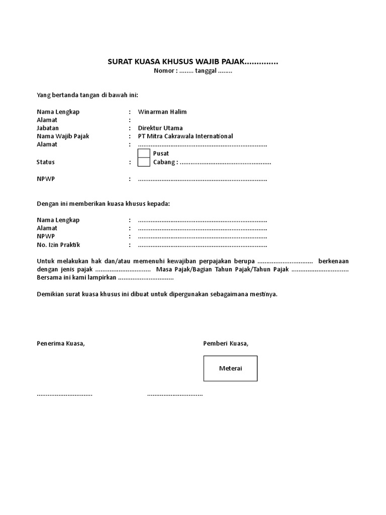 Contoh Surat Kuasa Khusus Wajib Pajak Xmast 4