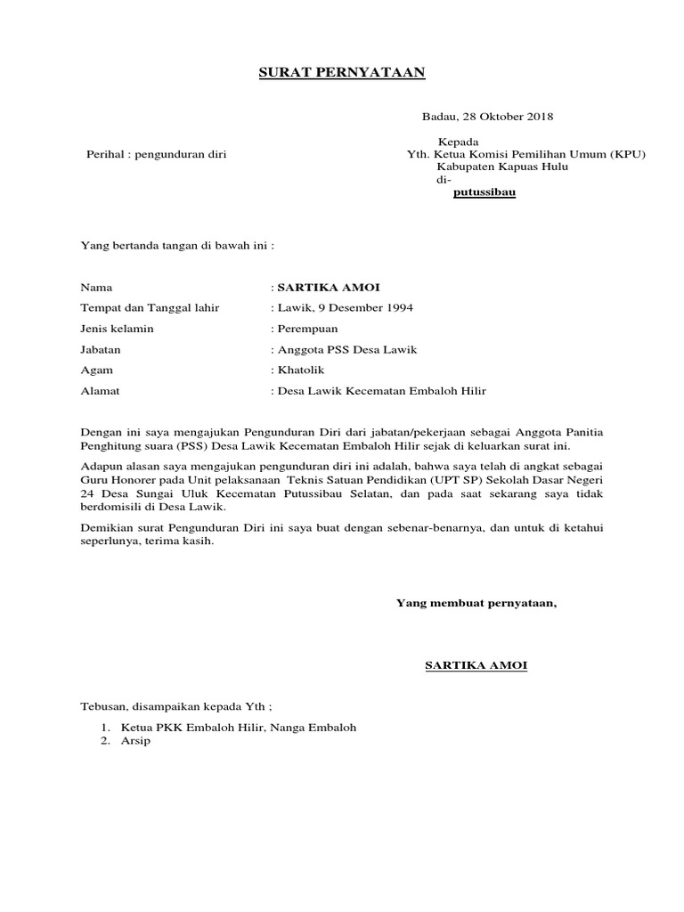 Contoh Surat Pengunduran Diri Tenaga Honorer Kontrak Ato