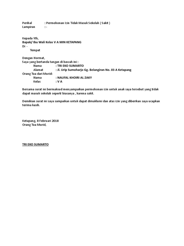 Contoh Surat Izin Tidak Masuk Sekolah Karena Sakit Isisuratcom