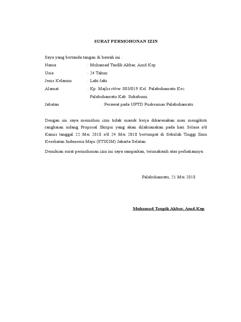 Contoh Surat Izin Tidak Masuk Kerja Yang Benar 2019 Contoh Surat