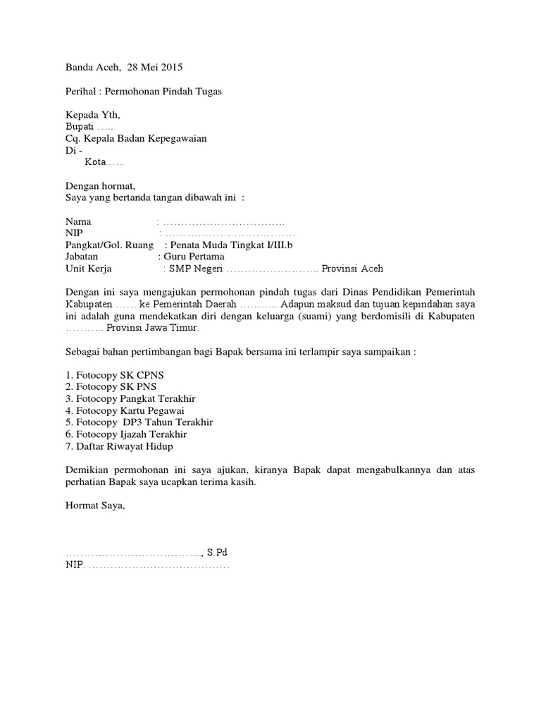 Contoh Surat Pengajuan Mutasi Pns Guru
