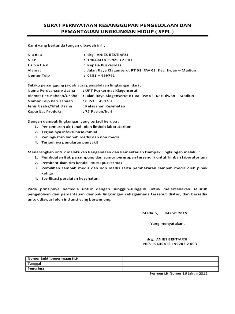 Inilah yang anda cari tentang Surat Pernyataan Pengelolaan Lingkungan Sppl.