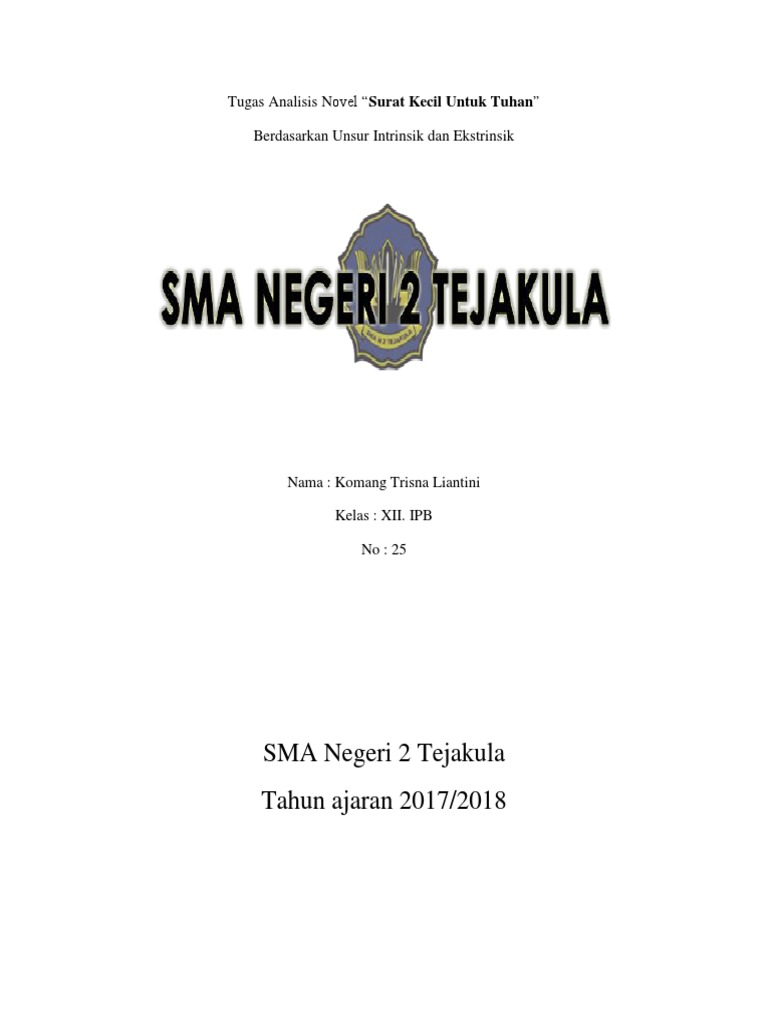 Analisis Unsur Intrinsik Dan Ekstrinsik Novel S U R A T Kecil Untuk