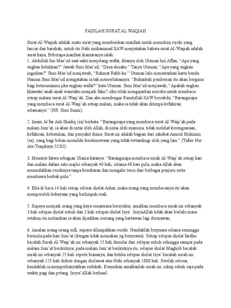 Surah Al Waqiah Terjemahan Khasiatnya By Semoga Bermanfaat