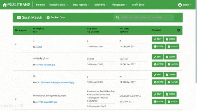 Aplikasi pendataan surat masuk dan surat keluar adalah aplikasi yang sangat fungsional biasa digunakan di perkantoran untuk mengelola data data surat.