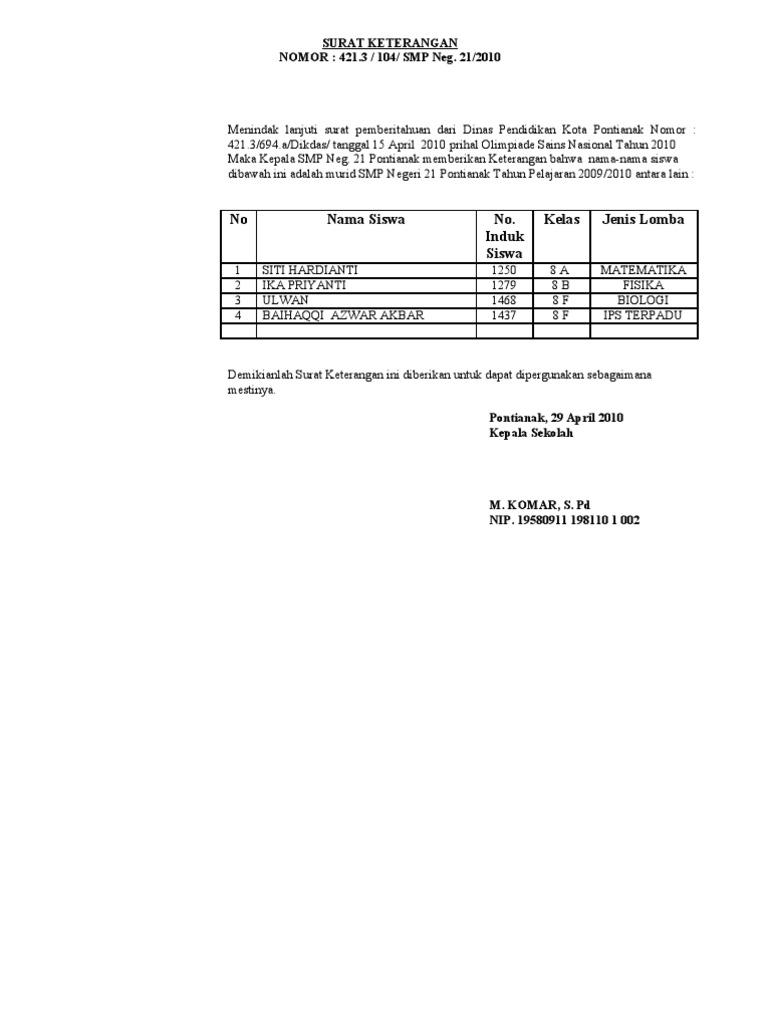 Contoh Surat Keterangan Siswa Dengan Nisn