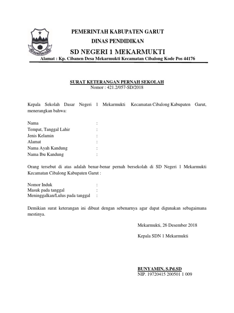 Contoh Format Surat Keterangan Kelulusan Sd Mi Smp Mts Sma Ma Smk