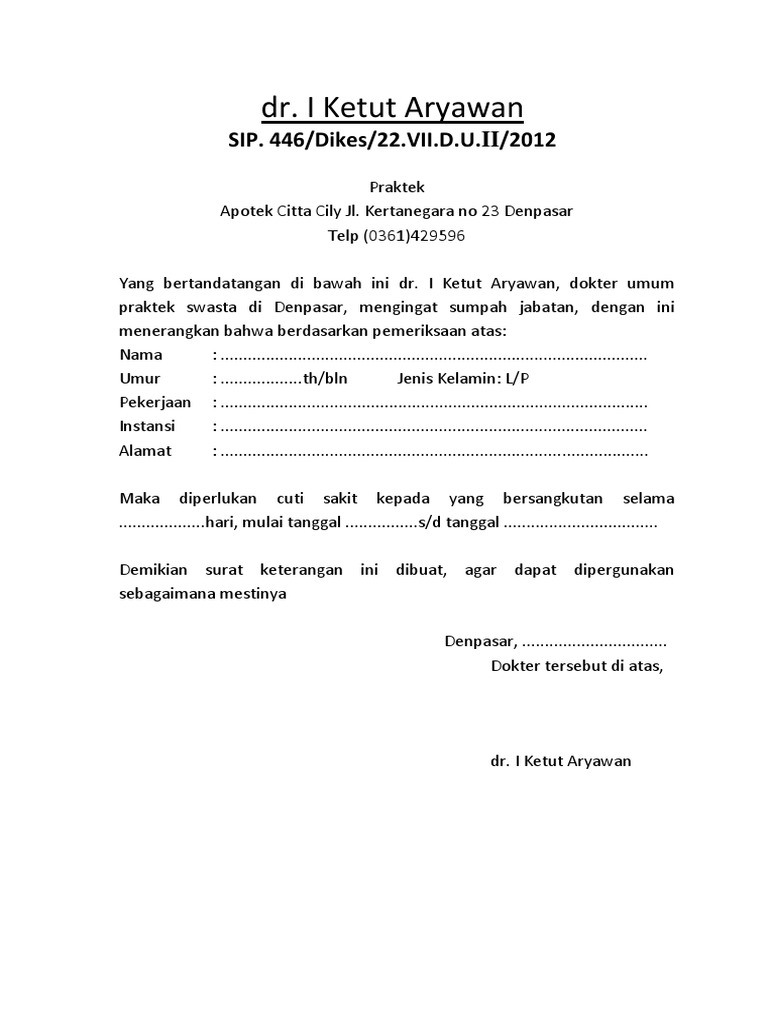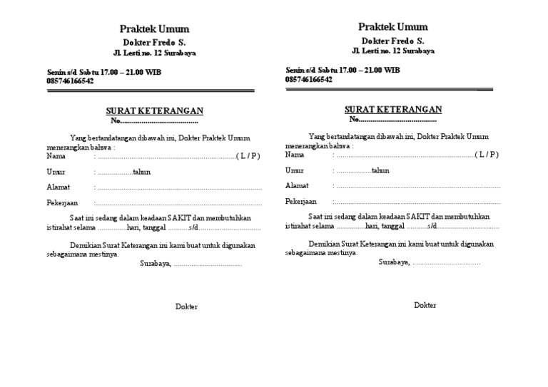 Apakah anda sedang mencari informasi Contoh Surat Keterangan Sakit Dari Dokter Praktek Umum.