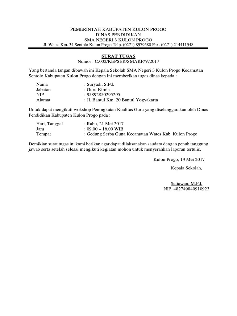 Contoh Surat Tugas Dari Sekolah Kepada Gurustaff Untuk Mengikuti