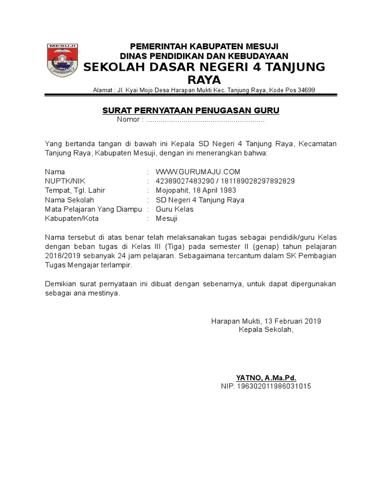 Contoh Surat Pernyataan Aktif Mengajar Bagi Guru Surat Pernyataan