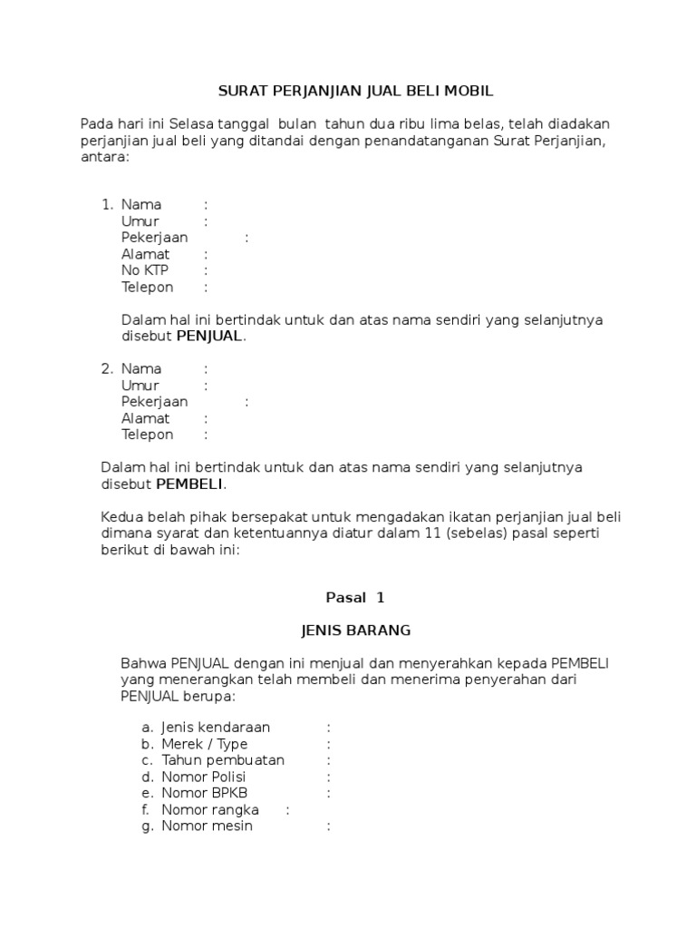 Contoh surat perjanjian jual beli rumah sederhana. Download contoh surat perjanjian jual beli mobil sederhana yang resmi agar tidak terjadi masalah di kemudian hari antara kedua belah pihak. Pada artikel contoh surat perjanjian jual beli tanah terbaru 2019 kali ini kita akan membahas mengenai topik yang hampir sama. Surat perjanjian jual beli adalah surat yang dibuat oleh penjual dan pembeli untuk menerangkan atau menjelaskan hak dan kewajiban kedua belah pihak.