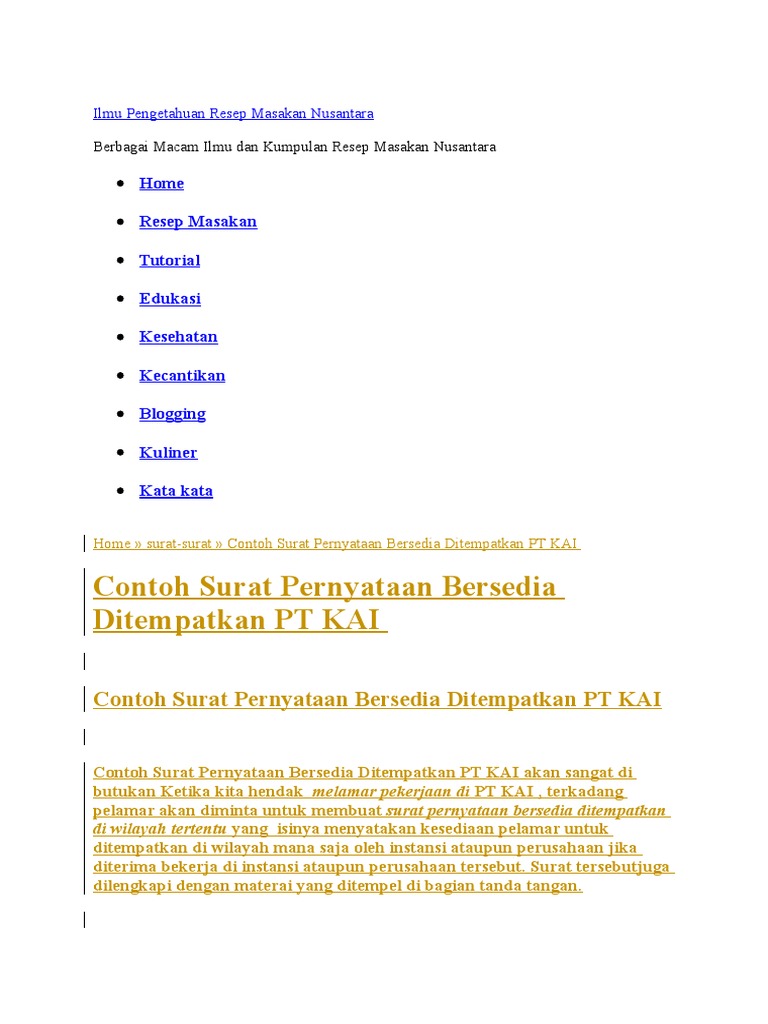 Berikut adalah detail Contoh Surat Pernyataan Bersedia Ditempatkan Diseluruh Wilayah Kerja Pt Kai.