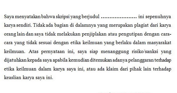 Contoh Surat Pernyataan Keaslian Skripsi Tugas Akhir Surat