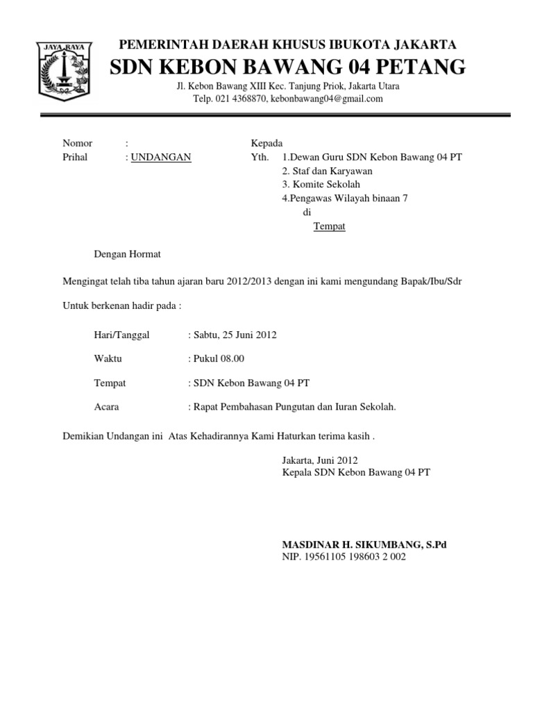 Contoh Surat Undangan Rapat Komite Sekolah Terbaru Supervba