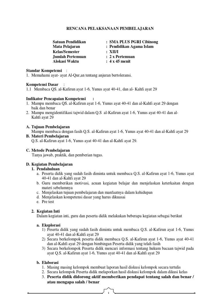Rpp Pai Berkarakter Kelas Xii Semester Ganjil