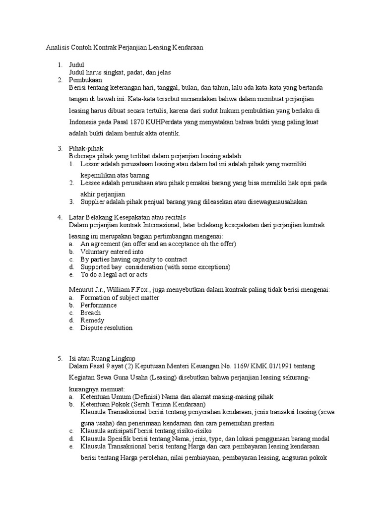 Analisis Contoh Kontrak Perjanjian Leasing Kendaraan