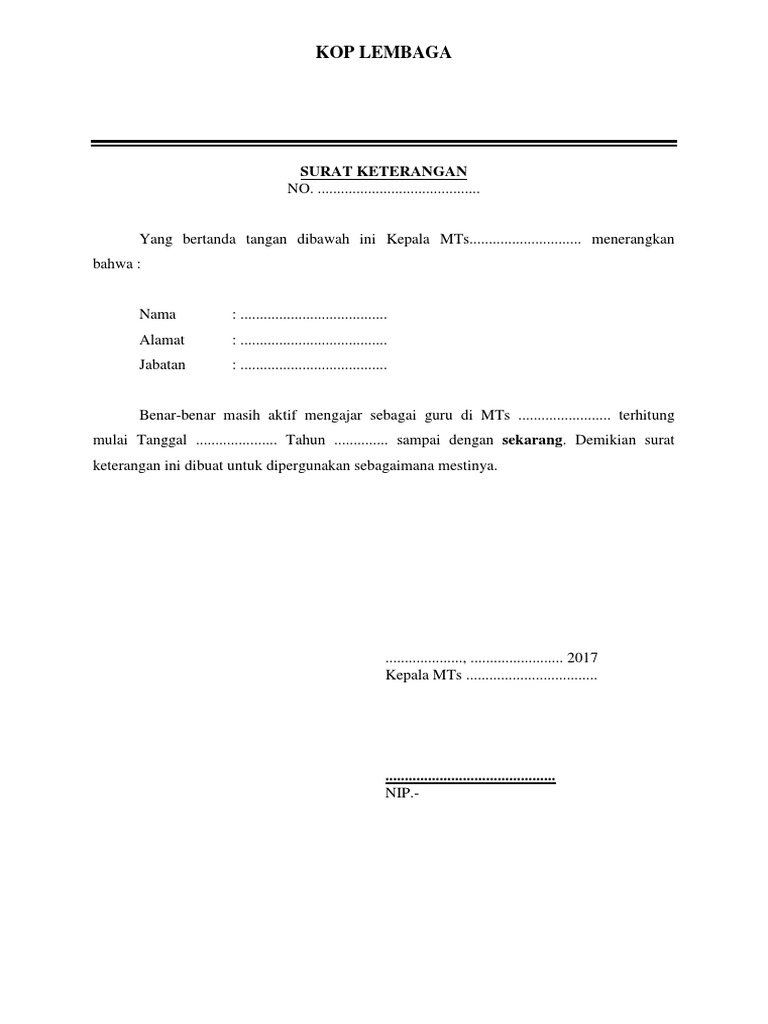 Contoh Surat Keterangan Aktif Mengajar